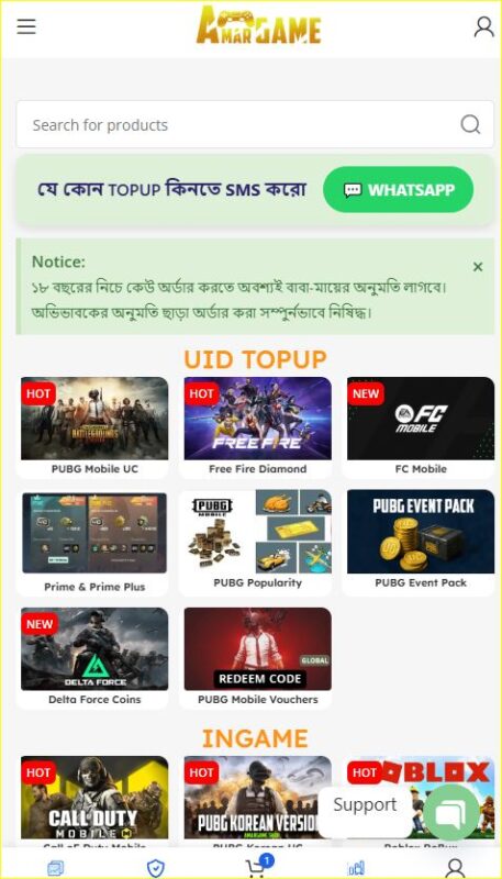 সকল প্রশ্নের সমাধান amargame.shop আপনার এখান থেকে খুব সহজেই পাবজি মোবাইলের ইউসি ফ্রী ফায়ার ডায়মন্ড সহ বিভিন্ন গেম কারেন্সি কিনতে পারবেন বিকাশ নগর কিংবা রকেটের মাধ্যমে। এইজন্য Google brower আসে সার্চ করেনAmarGame.shop